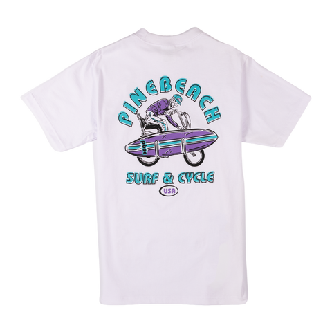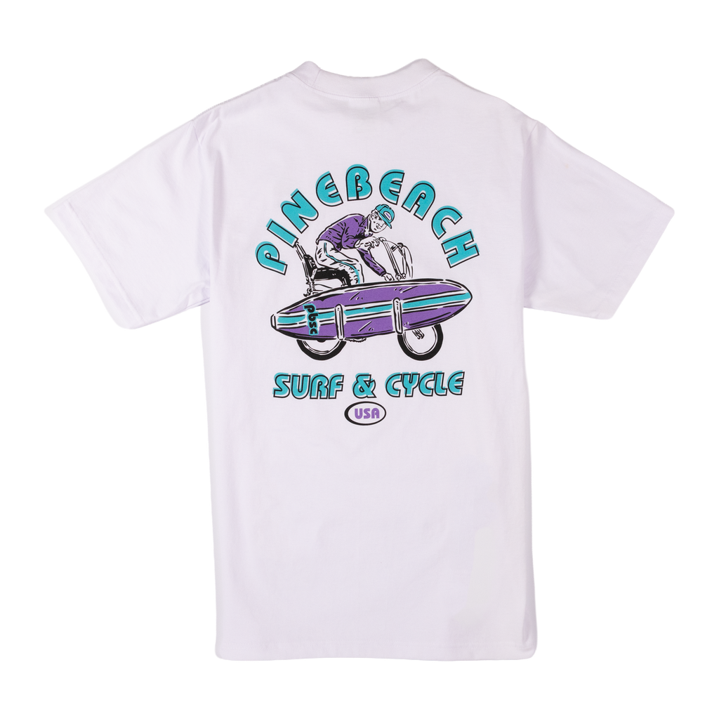The Pinebeach Surf and Cycle tee is a love letter to simpler times—when a bike and a board were all you needed for a perfect day. This vintage-inspired piece channels the spirit of old-school riders and wave chasers who lived for the freedom of the open road and endless swells. Whether you're cruising coastal paths or reminiscing about those golden-hour sessions, this tee captures that timeless blend of salt spray and pavement. Wear it and remember why you fell in love with the ride.