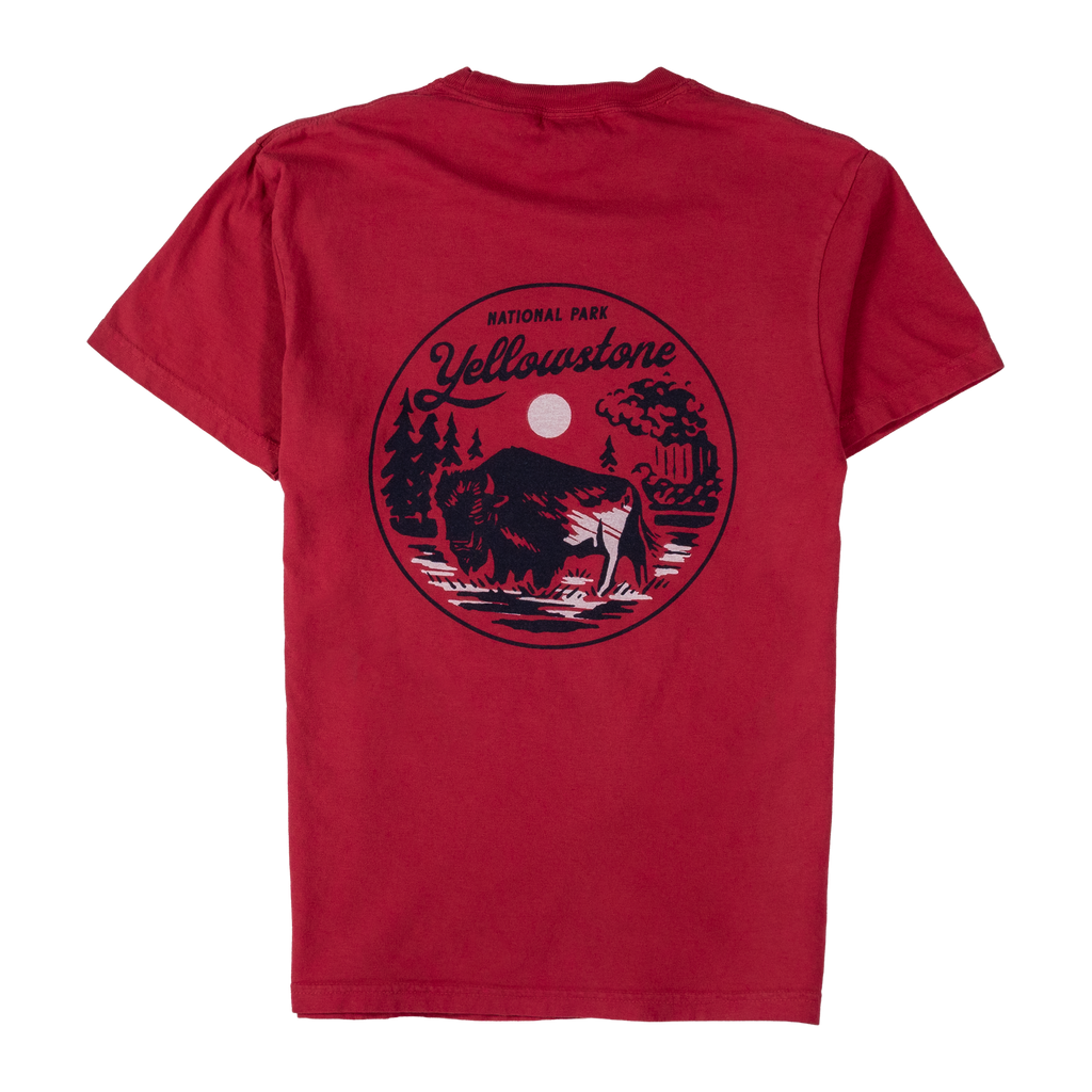 The world's first National Park, Yellowstone was founded in 1872.This unique design features a bison, geyser and pine trees.